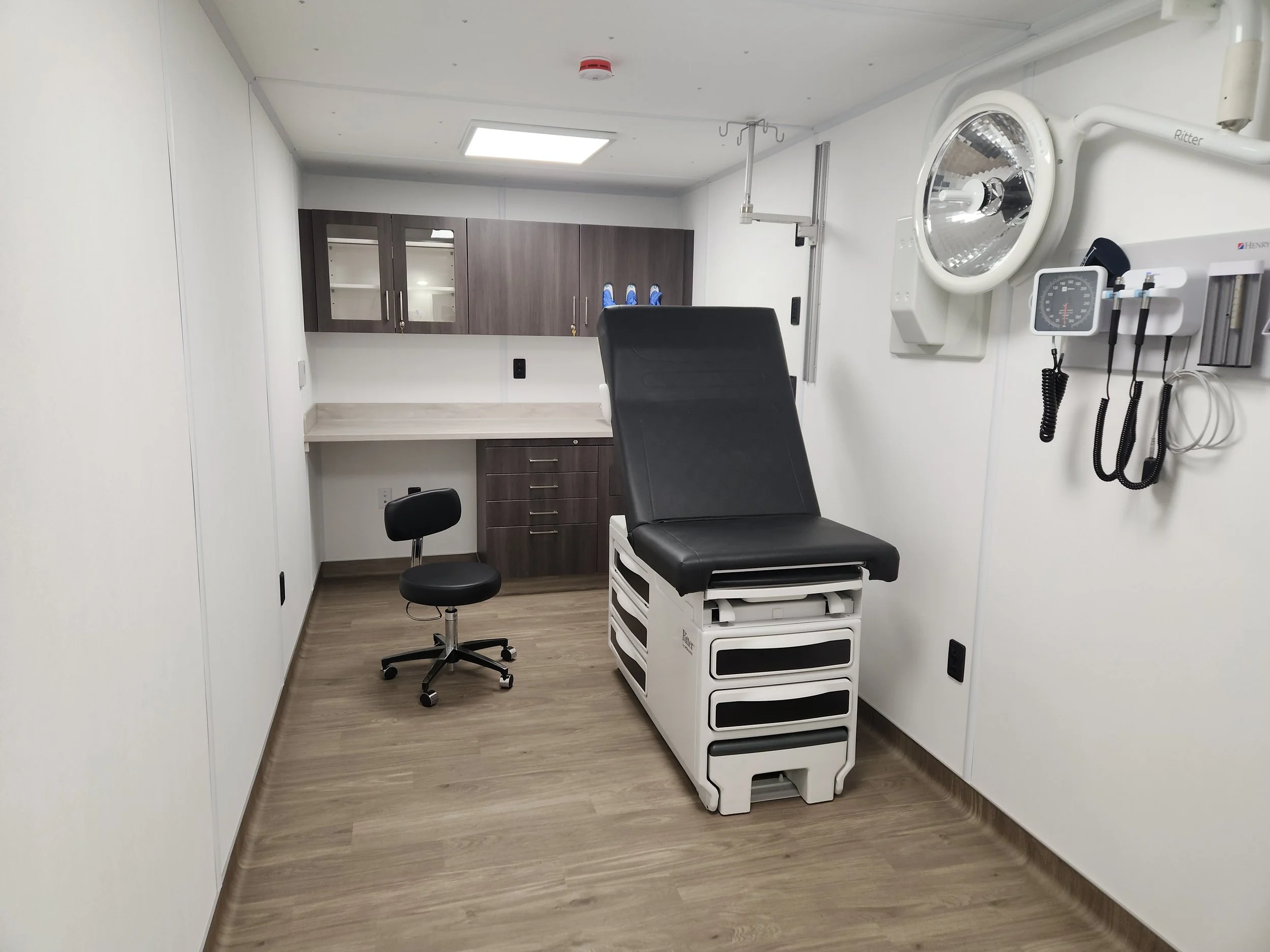 It’s important for patients and practitioners alike to feel comfortable in their exam rooms, and we’re confident that neither will notice the space was once a shipping container when inside our clinics. We use high quality materials for all cabinets and flooring, and our clients can customize them to match their preferences.